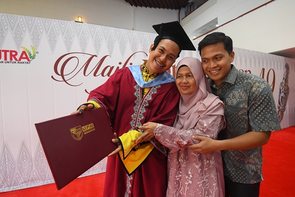 Azmah yang juga alumni UPM tahun 2006 menzahirkan rasa syukur kerana dapat melihat sendiri anaknya berkonvokesyen di dewan yang sama tempat beliau menerima ijazah hampir dua dekad lalu.