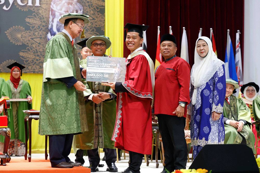 BINTULU, 2 Nov – Adika Rahmat Kadondoig, 24, dinobat sebagai pemenang Hadiah Live Animals Medical Centre (Graduan Terbaik Bacelor) pada Majlis Konvokesyen Universiti Putra Malaysia (UPM) ke- 48 Sidang 1, UPM Kampus Bintulu (UPMKB) hari ini.